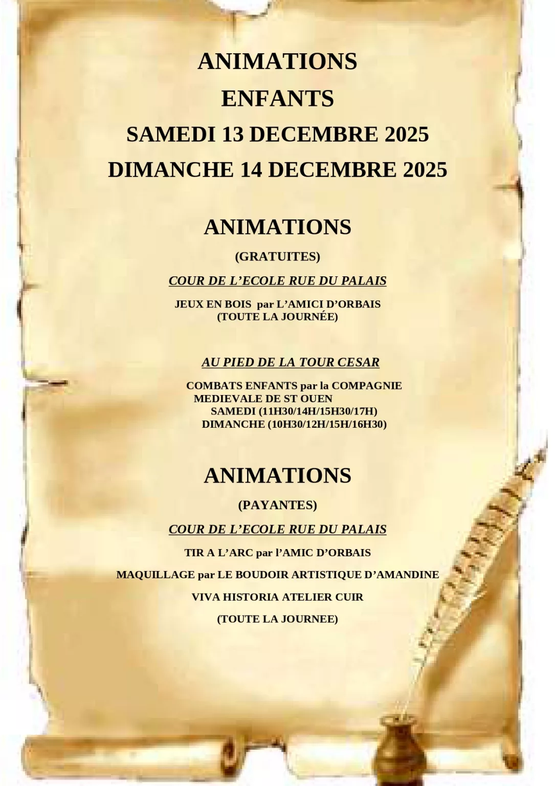 Programme des animations du samedi