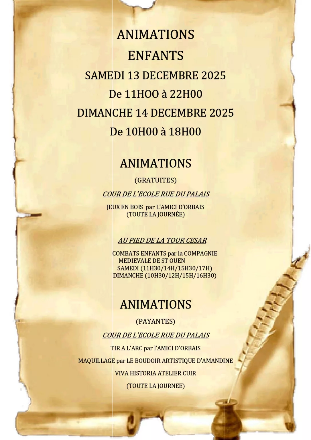 Programme des animations enfants